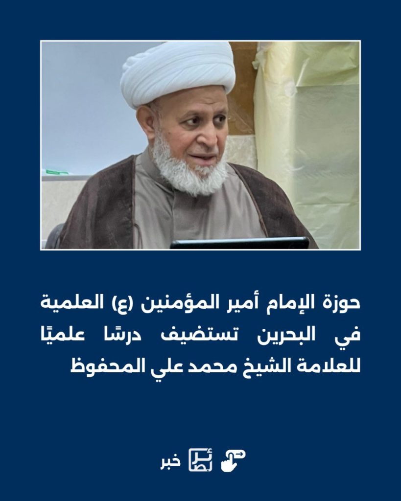 25 يناير, 2026حوزة الإمام أمير المؤمنين (ع) العلمية في البحرين تستضيف درسًا علميًا للعلامة الشيخ محمد علي المحفوظ