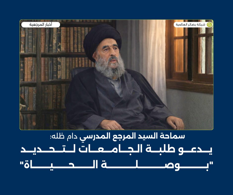 30 يناير, 2026سماحة السيد المرجع المدرسي دام ظله يدعو طلبة الجامعات لتحديد”بوصلة الحياة”