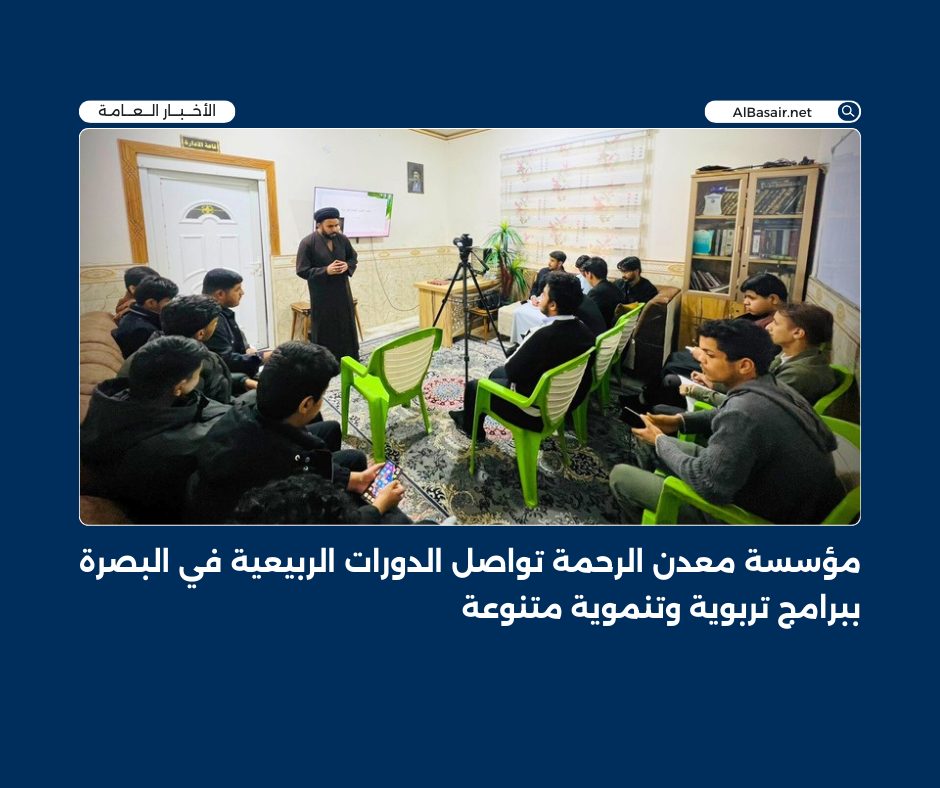 7 فبراير, 2026مؤسسة معدن الرحمة تقيم الدورات الربيعية للشباب في حسينية الإمام الصادق (ع) بالبصرة