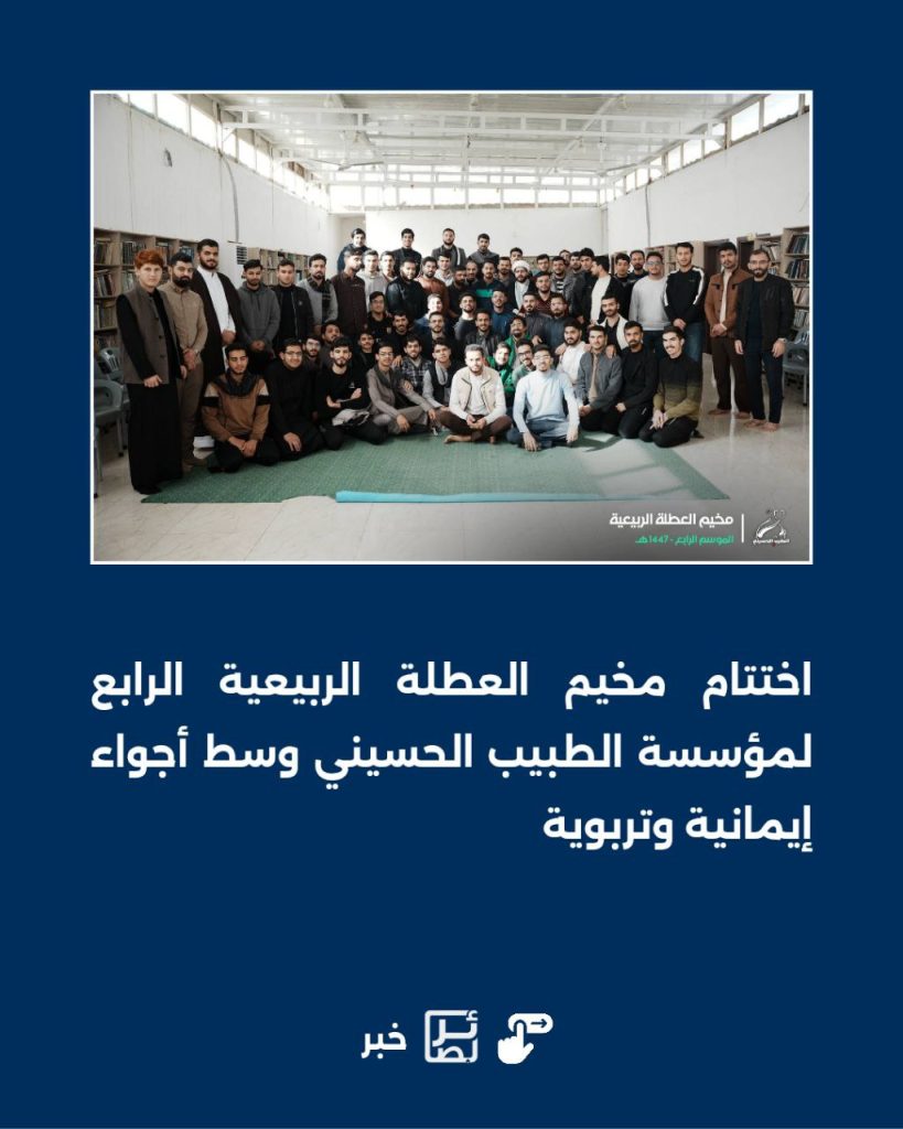1 فبراير, 2026اختتام مخيم العطلة الربيعية الرابع لمؤسسة الطبيب الحسيني وسط أجواء إيمانية وتربوية