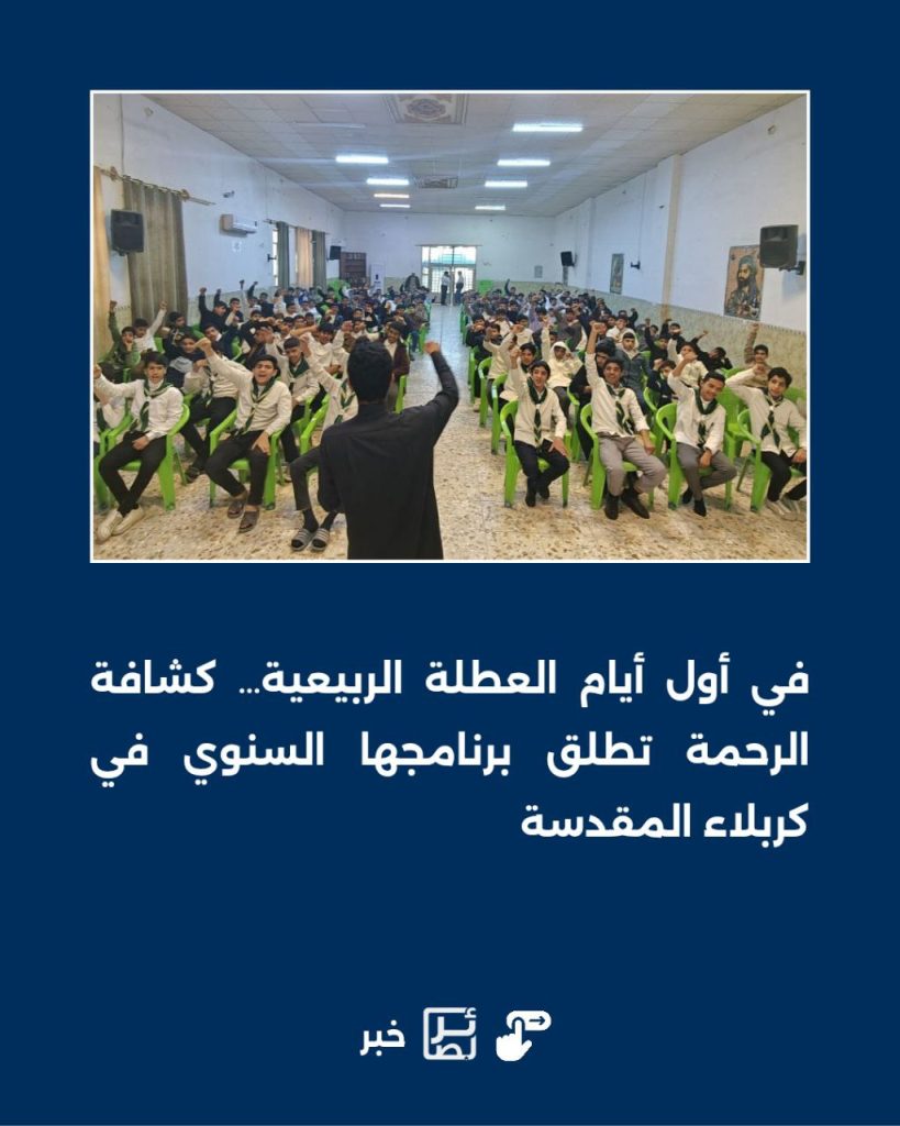 1 فبراير, 2026في أول أيام العطلة الربيعية… كشافة الرحمة تطلق برنامجها السنوي في كربلاء المقدسة
