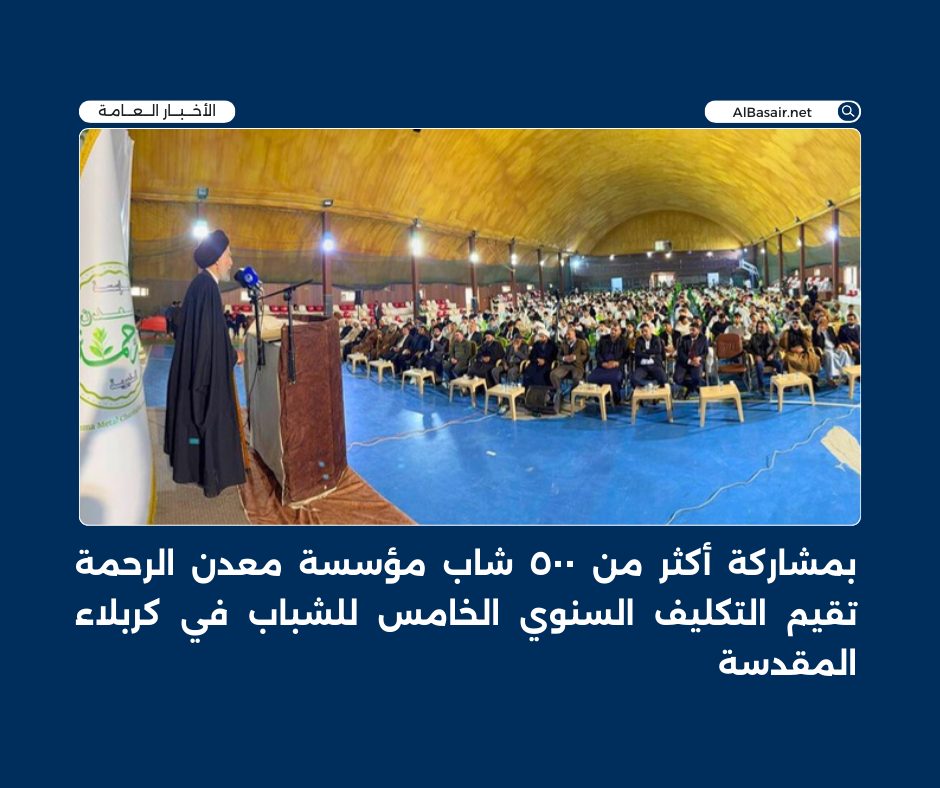 1 فبراير, 2026انطلاق برنامج التكليف السنوي لمؤسسة معدن الرحمة الخيرية في كربلاء المقدسة