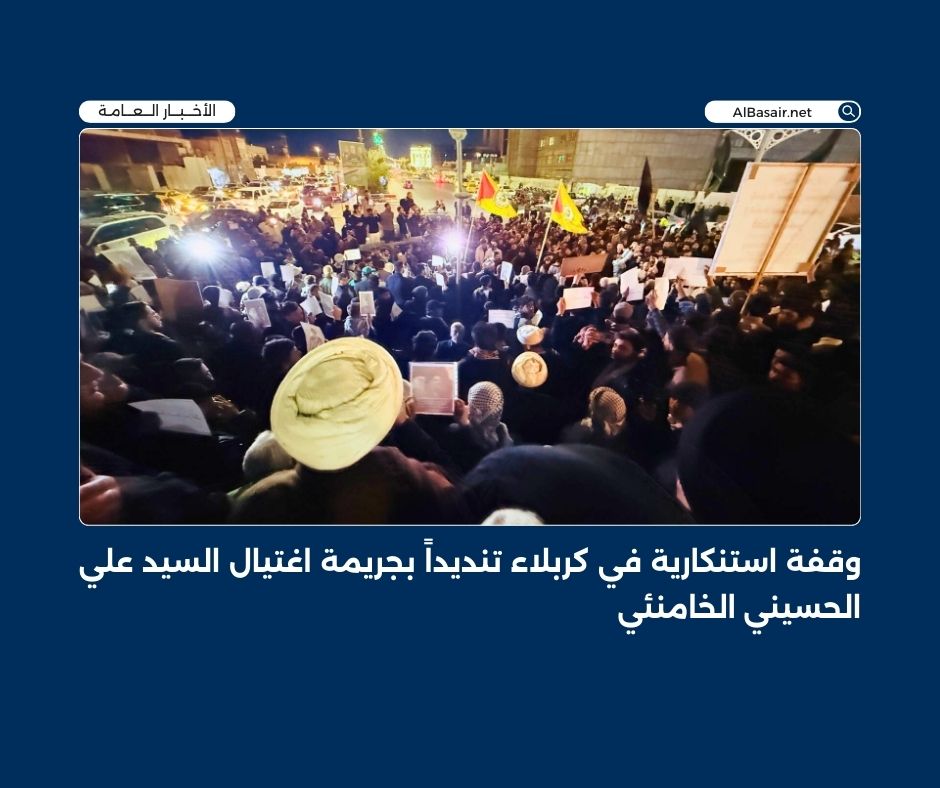 2 مارس, 2026وقفة استنكارية في كربلاء المقدسة تنديداً بجريمة اغتيال السيد علي الحسيني الخامنئي