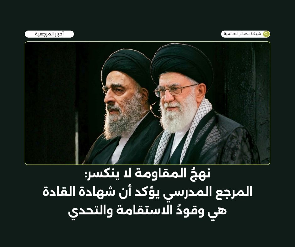 نهجُ المقاومة لا ينكسر: المرجع المدرسي يؤكد أن شهادة القادة هي وقودُ الاستقامة والتحدي